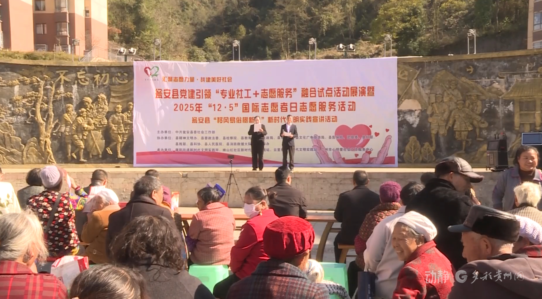 黔南州瓮安县通过开展“专业社工+志愿服务”融合试点活动,以宣读志愿服务活动倡议书的方式,号召社会各界积极投身志愿服务。当天,医疗、消防等志愿服务队相继开展急诊急救实操、消防安全演练等专业演示;便民服务区域同步开设义诊,未成年人保护等法律法规宣传,让志愿服务既具专业性又贴近群众需求。