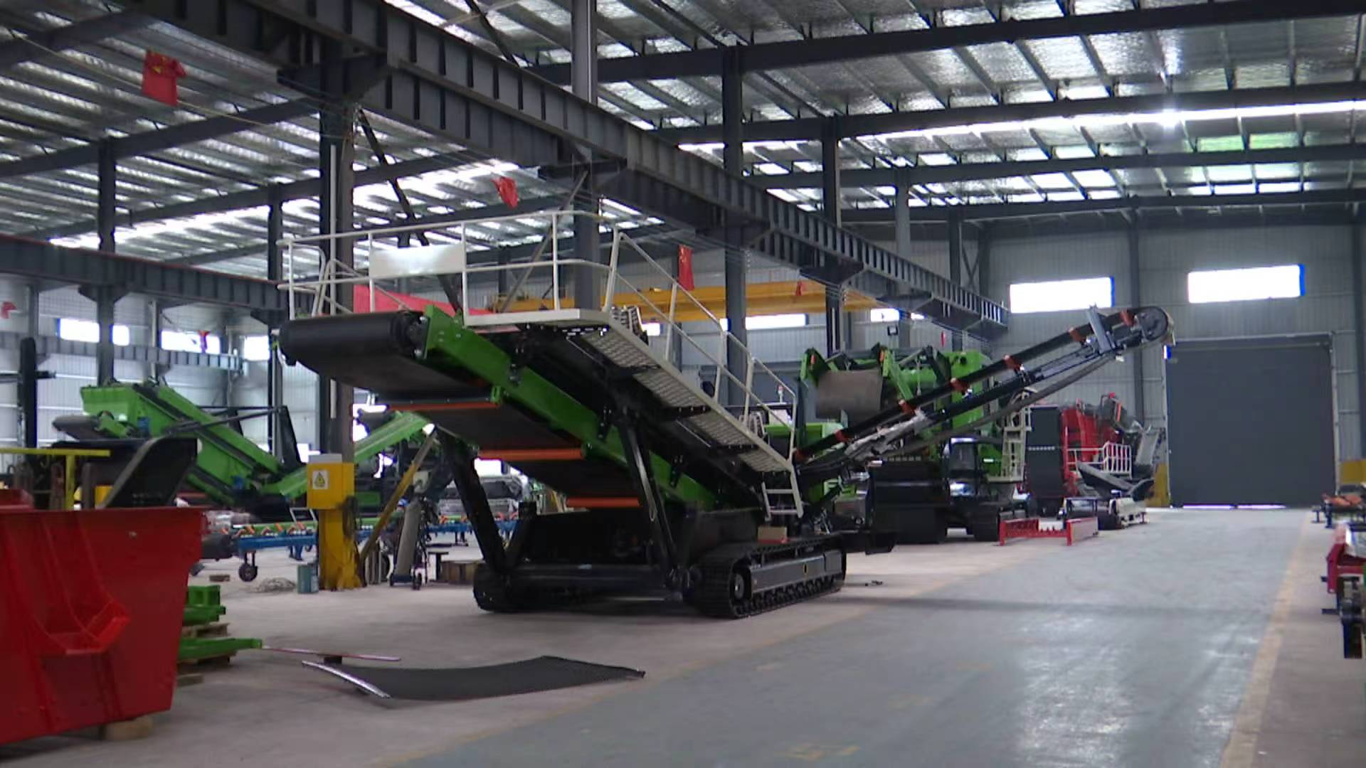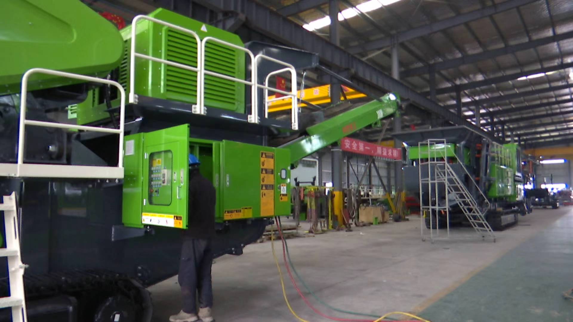在贵州镇宁自治县产业园的生产车间里,机器轰鸣不绝于耳,下料、焊接、打磨、组装等工序有条不紊地推进。生产线高速运转,焊花飞溅,工人们忙着调试一批批即将发往海外的重型破碎机械,车间里一片热火朝天的景象。工人们正在加紧完成一批发往沙特阿拉伯、巴西、尼日利亚的移动破碎筛分设备,生产线正满负荷运转,确保订单按期高质量交付。
