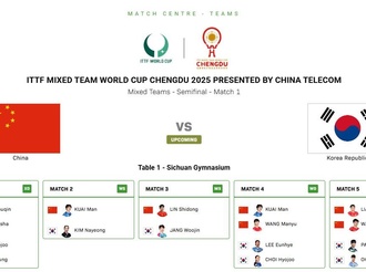 国际乒联混团世界杯半决赛 中国对阵韩国名单出炉2025年12月07日 -