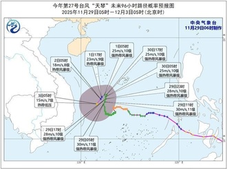 台风“天琴”将在南海回旋少动 部分海域阵风可达9级2025年11月29日 -