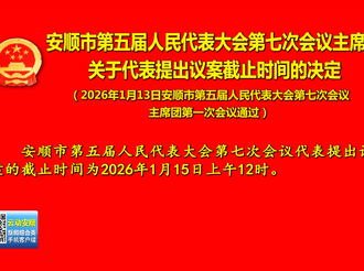 安顺市第五届人民代表大会第七次会议主席团关于代表提出议案截止时间的决定2026年01月13日 -