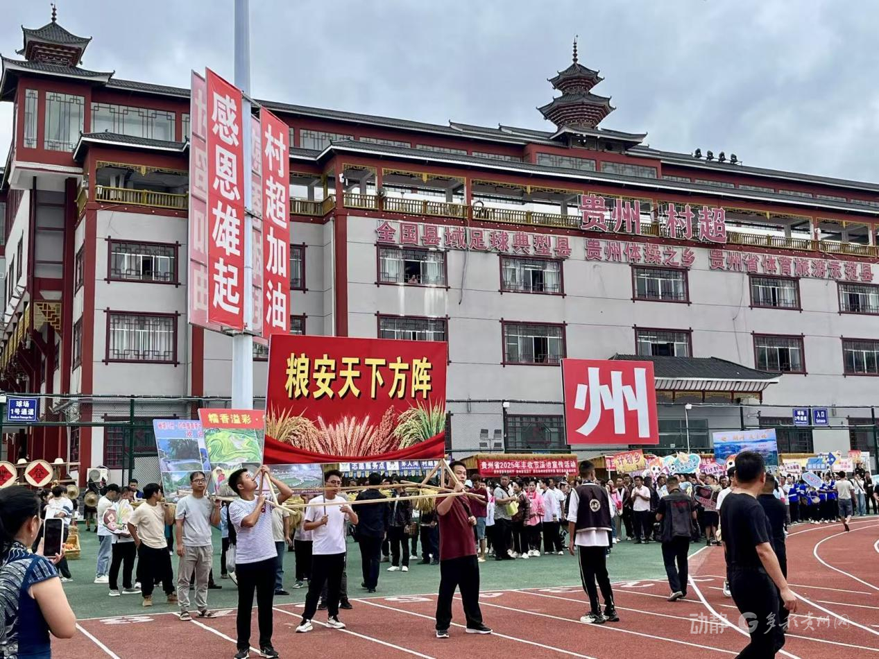 贵州村超球场上,“中国人的饭碗要牢牢端在自己手中”这条标语格外的醒目。