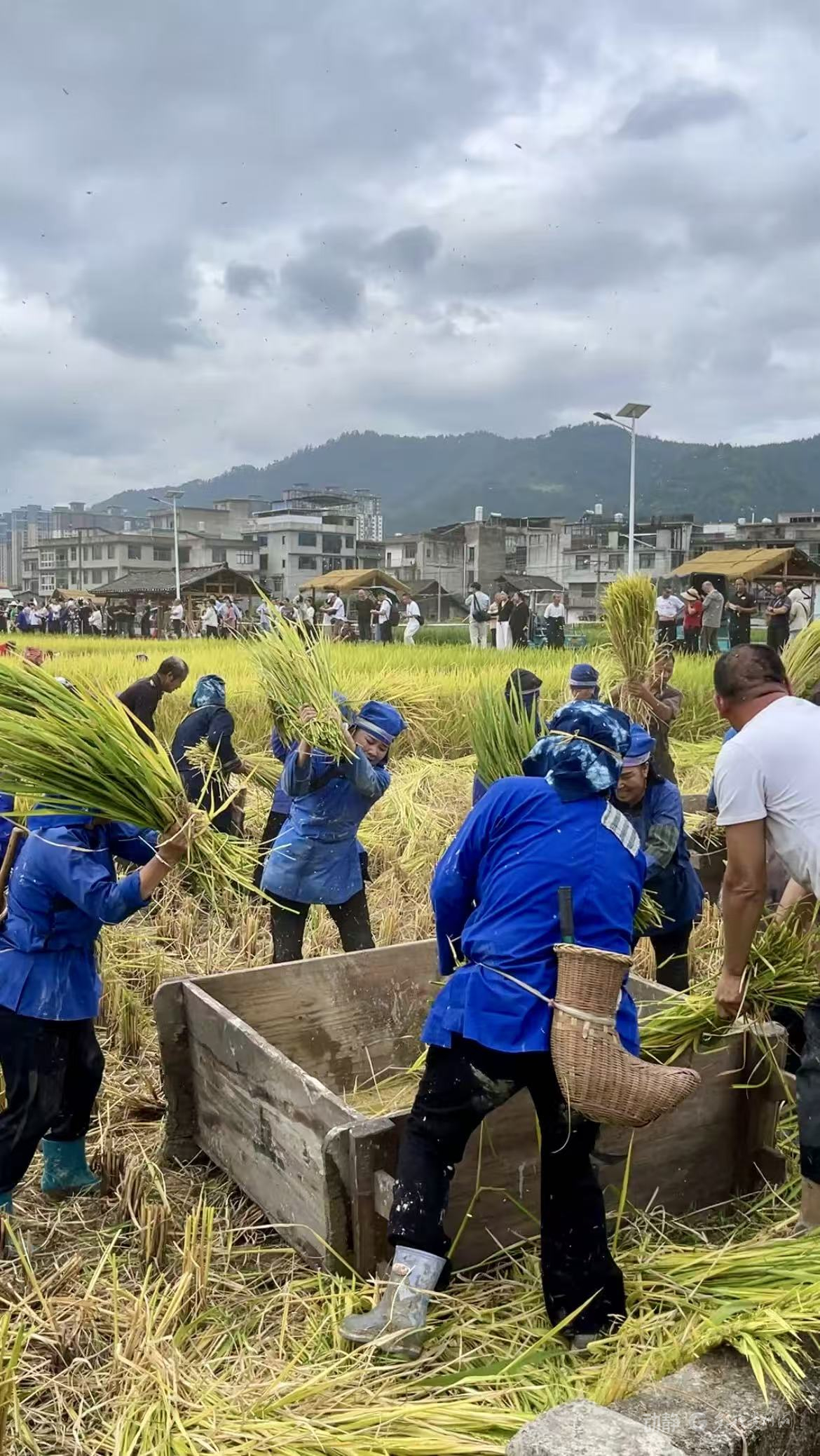 在分会场榕江县三宝侗寨,手打谷子、水田捕鸭等趣味农事活动轮番登场,吸引了大批村民参与。