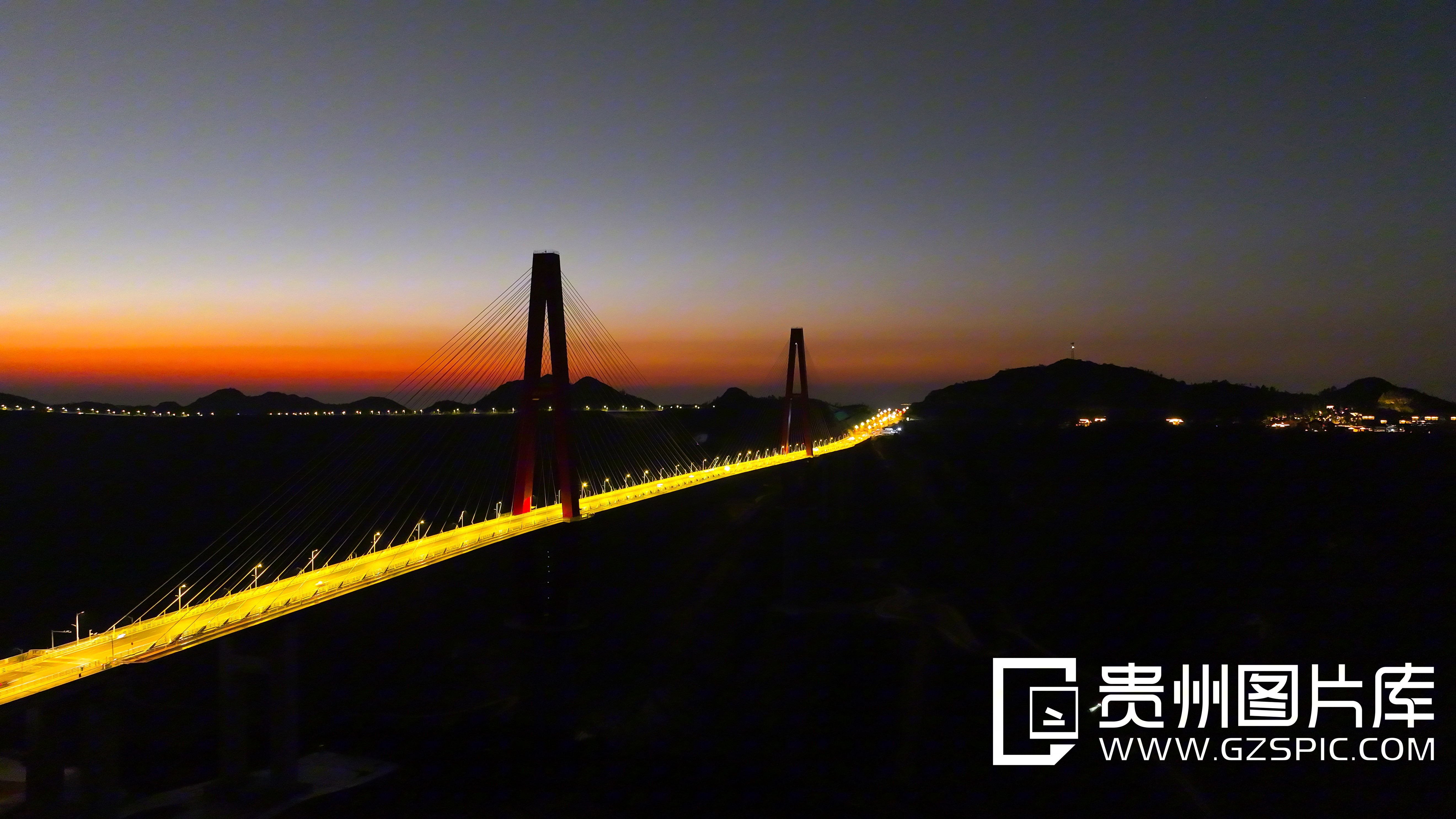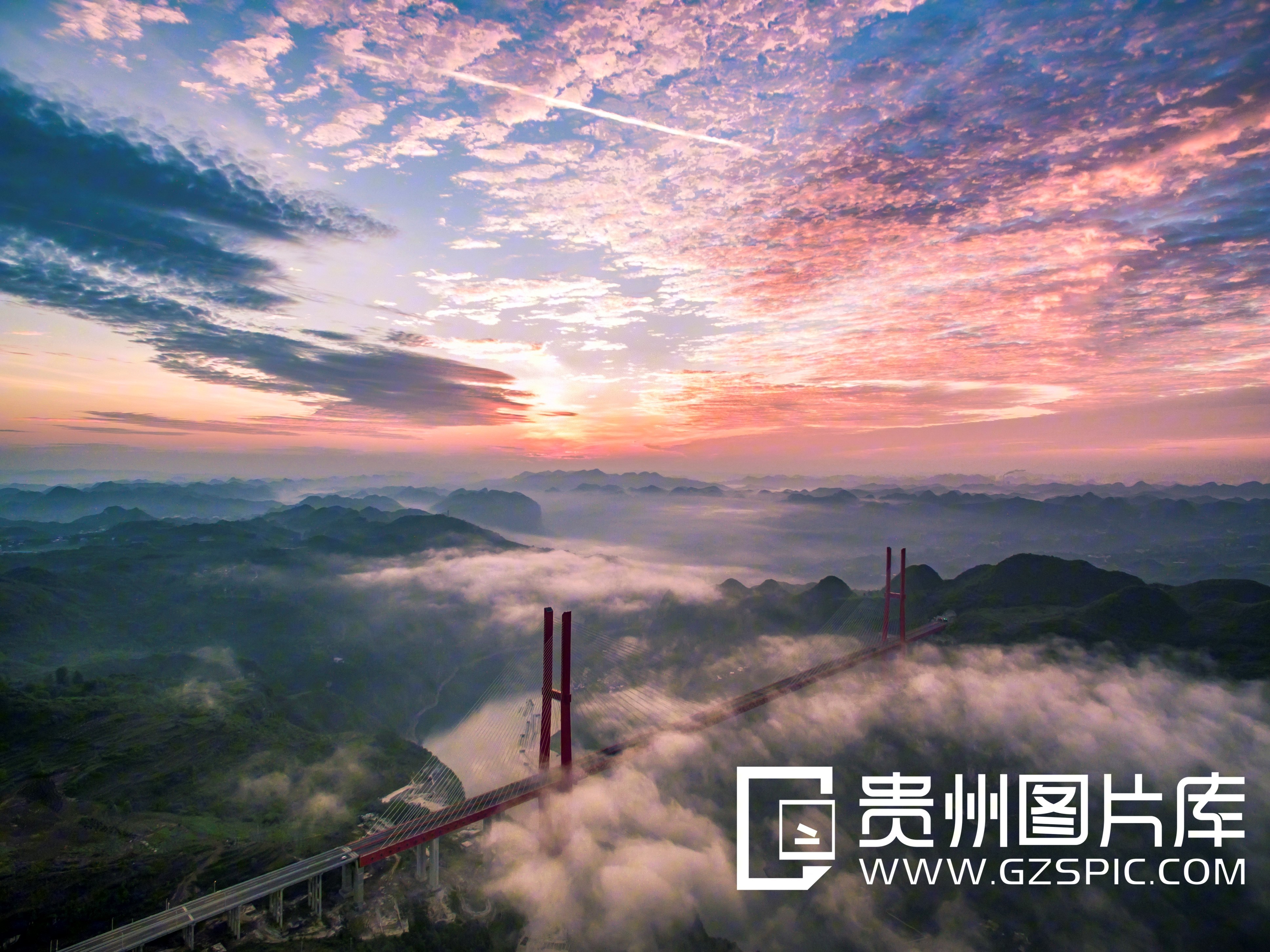 龙里河大桥是一座兼具旅游和交通功能的大桥。夕阳西下,龙里河大桥在晚霞的映衬下美轮美奂。潘希来 摄