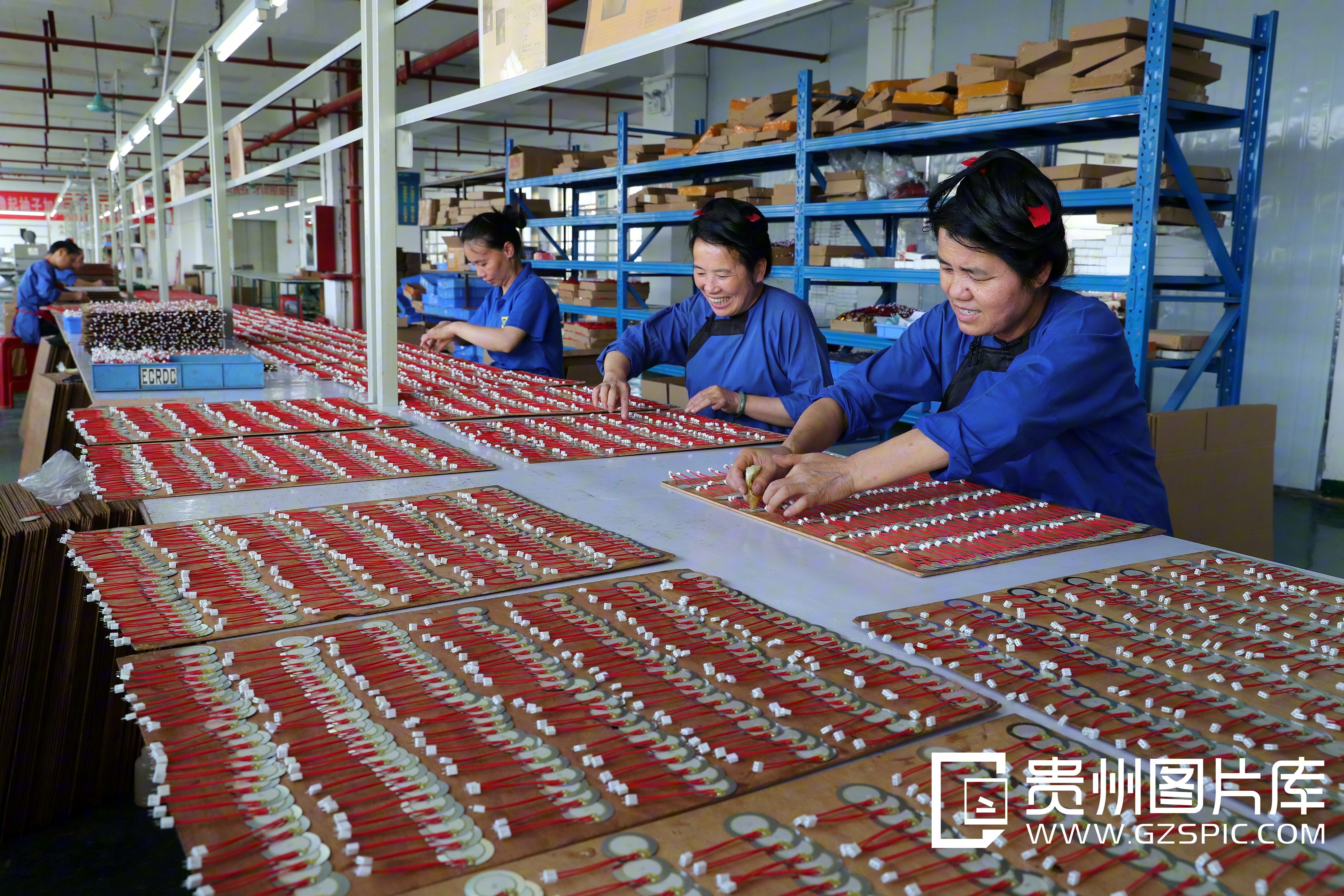 2023年5月29日,在黔东南苗族侗族自治州榕江县工业园区的一家电子科技生产车间,工人在生产电子配件。李长华 摄