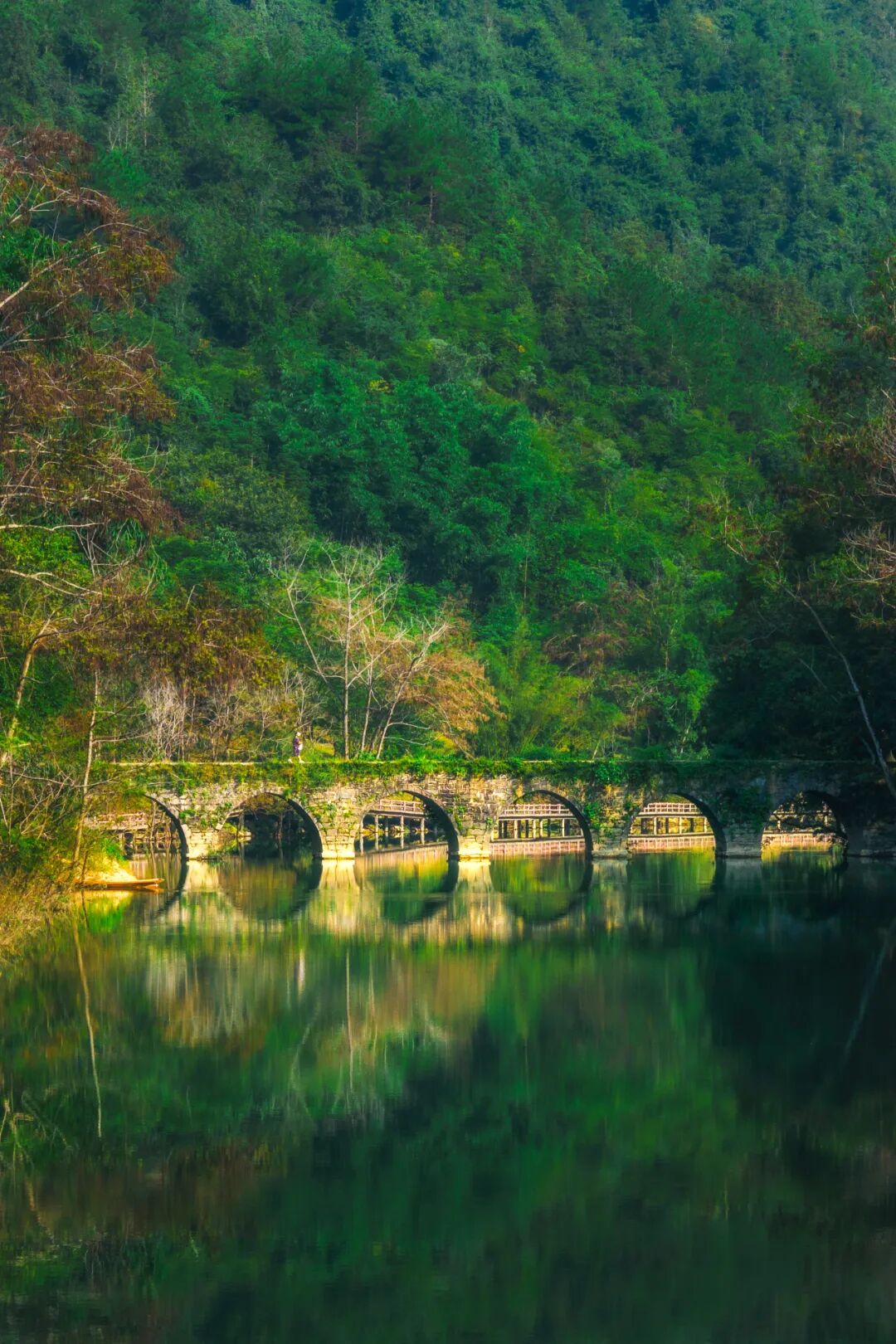 在黔南荔波的青山绿水间,担任着连通黔南往广西的商旅要道的重要职责的大小七孔桥,以一秀美一雄奇的姿态,展现了贵州桥梁另一种建桥智慧。小七孔桥建于清道光十五年(1835年),以七孔石拱横跨响水河;大七孔桥始建于道光二十七年(1847年),后称双溪桥,雄跨孟塘河之上。