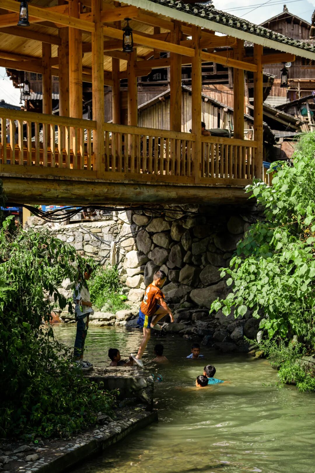 人们始终相信,桥在,希望就在。即使在风雨桥上恋爱的人已然不多,但热闹仍在,村民日常在此乘凉聚集;每逢集市日,身着精美银饰服饰的苗族群众路过此桥,侗族村民喝了几杯下肚,开始歌唱。桥的另一侧,有地坪镇中心小学。周边乡村的孩子们,每日都要跨越这座桥上下学。风雨桥退居成忠诚的守护者,守护着一方安宁,庇佑着孩子们求学路途;或许几十年后,它仍将是那座指引方向的灯塔,在岁月长河中引领着一代代人相遇,交流,然后走向更广阔天地。