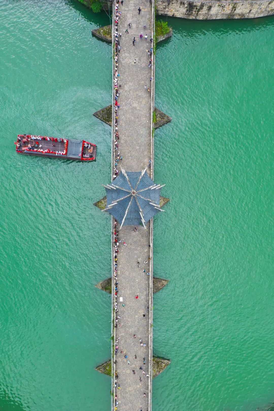 两桥精妙的多孔分流布局,有效化解了洪水的猛烈冲击,使桥身得以稳渡汛期。当中,小七孔桥的建造尤为巧妙——它未强行改造河道,而是借天然礁石为桥墩之基,将桥体直接锚固于稳固的岩石之上,桥梁与地基浑然一体。其孔径随河道宽窄自然渐变的设计,既顺应了山区河流骤涨骤落的水文特性,也在当年兼顾了陆行通途与小型航运之需。这两座桥同样并非以强力“征服”自然,而是深刻理解水势地形,以巧思顺应和利用河流特性,开创了与自然共存的另类通路可能。