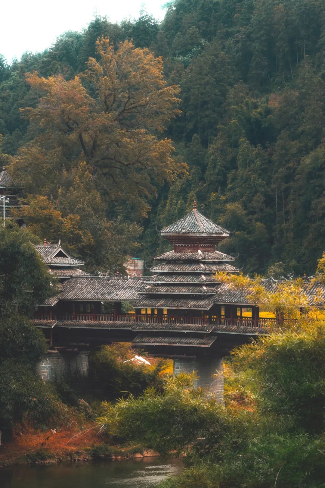 若说祝圣桥装着文明的相遇,那黎平地坪的风雨桥,还承载着贵州独有的“浪漫主义”。