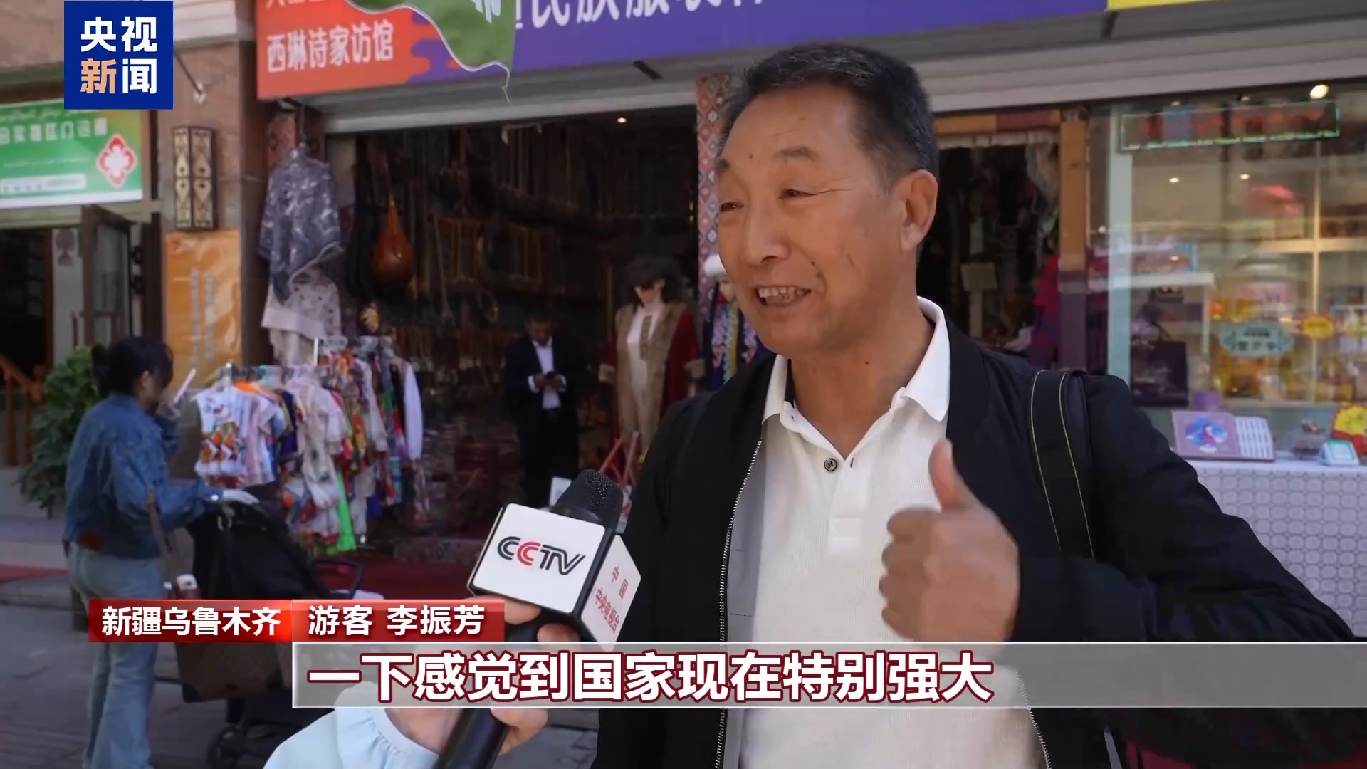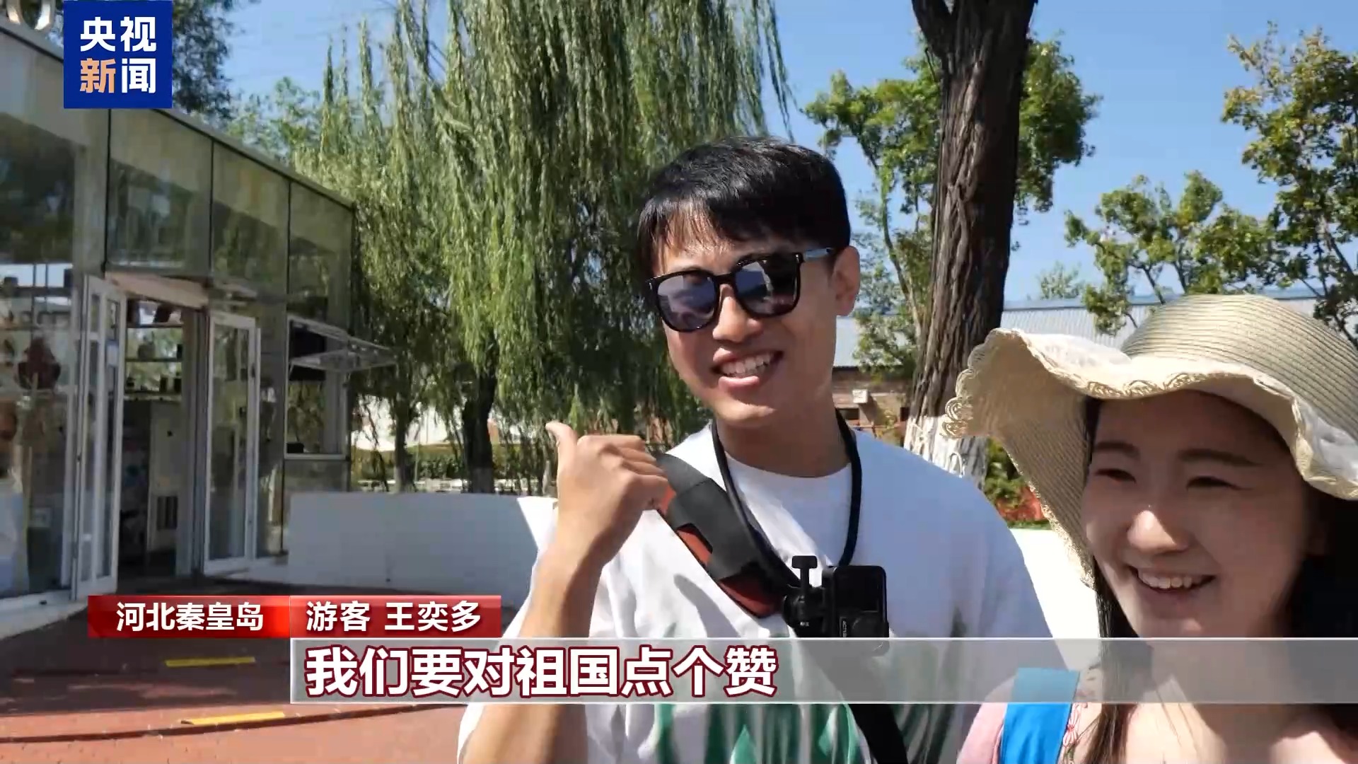 游客 王奕多:很多外国的朋友来我们中国很有感触,中国是很美丽的国家,一个很安全的国家,我就觉得很骄傲,很自豪。我们要对祖国点个赞,大大的赞。