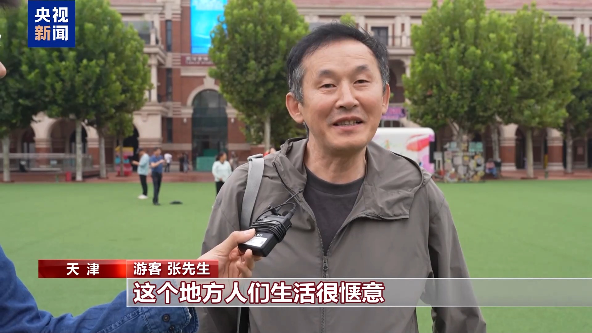游客 张先生:上海合作组织峰会刚刚从这里结束,觉得天津从电视报道来看,让人感到很漂亮。变化很大,这个地方人们生活很惬意。