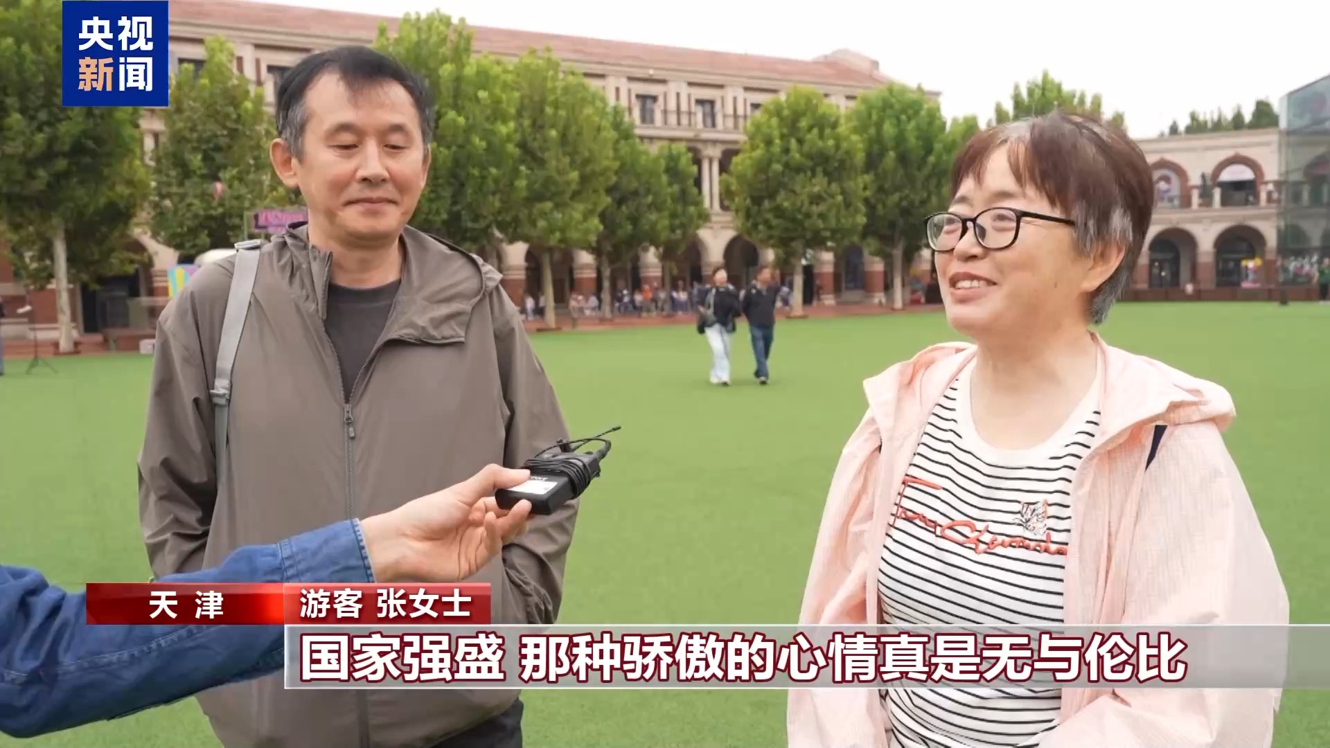 游客 张女士:今年看九三阅兵,我们是一家人,老少三代在一起看。国家强盛,那种骄傲的心情无与伦比。含着眼泪,热泪盈眶地在看。我们就觉得这是泱泱大国,我们的底气,我们民族的骄傲,一下就展现在世界人民面前。国家几代人也在奋斗,咱们国家的每个人也在努力奋斗,一起奔向幸福的今天和明天。祝咱们的祖国繁荣昌盛,国泰民安。