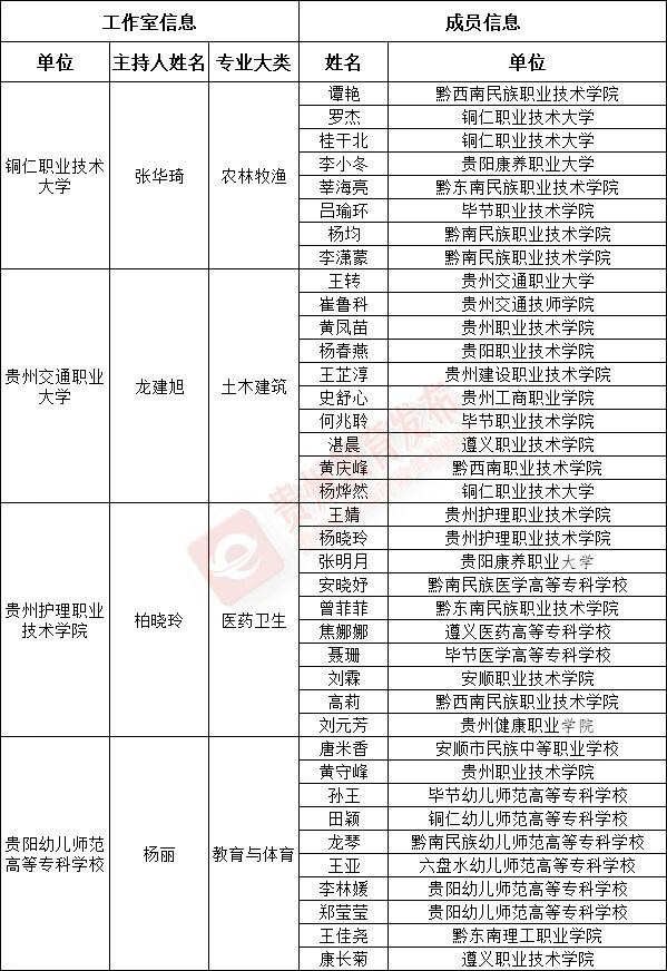 根据《省教育厅办公室关于推荐遴选新时代职业学校名师名校长工作室成员的通知》,经个人申报、学校推荐、工作室主持人初审、工作室主持人所在学校审核把关、省教育厅核查,确定谭艳等为新时代职业学校名师工作室成员,任红红等为新时代职业学校名校长工作室成员,现予以公布。一起来看具体名单——
