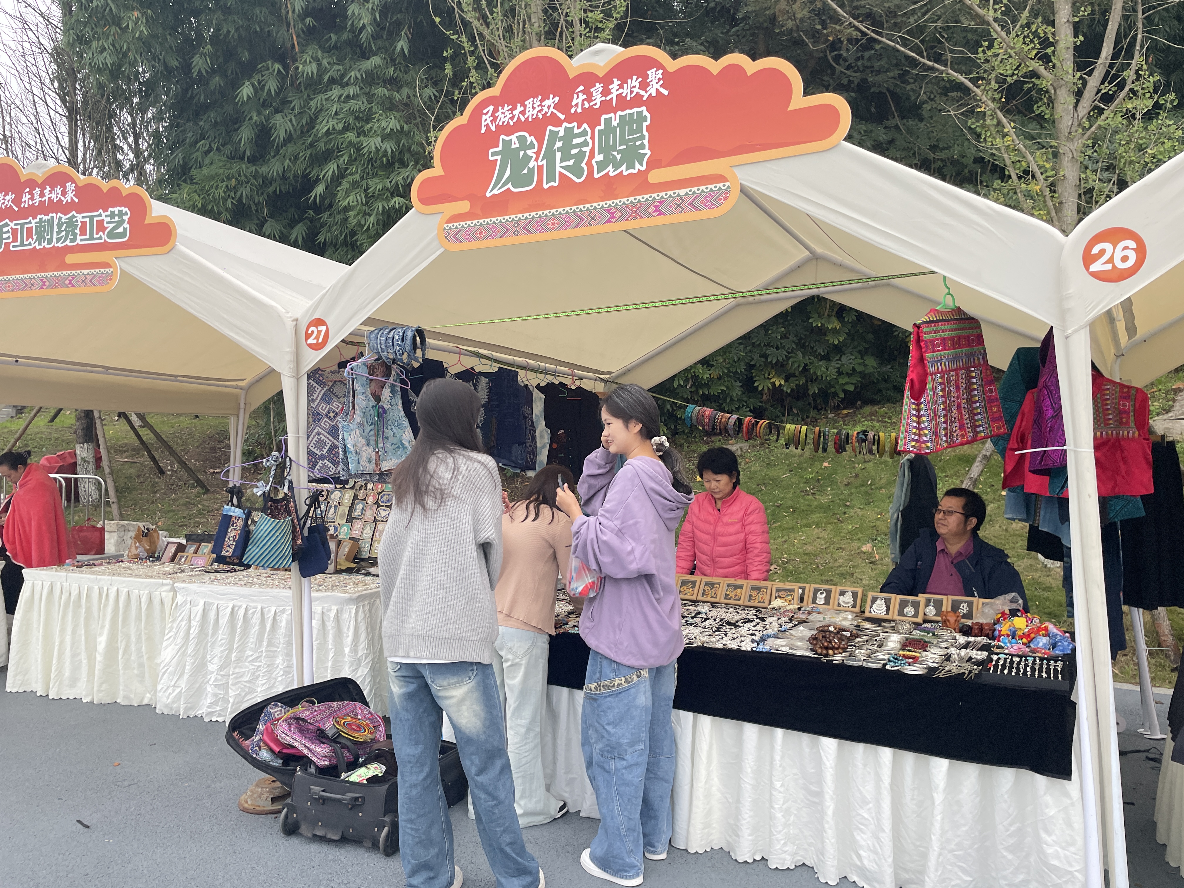 作为摊位负责人,老杨对活动效果非常满意:“去年我们也参加过民族大联欢活动,效果很好,所以今年组织了二十余家商铺一起来。今天每个摊位大概接待了100-200人,我们希望这样的活动能经常举行,让大家能接触到更多非遗文创产品。”