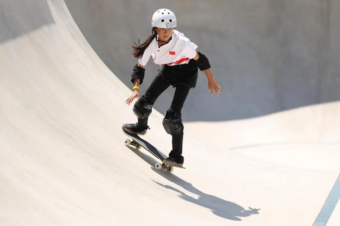 2024年8月6日,巴黎奥运会滑板女子公园赛,郑好好完成奥运首秀。