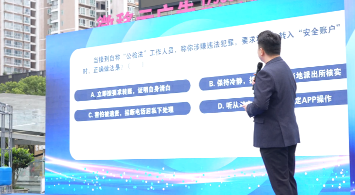 互动环节围绕未成年人保护、反诈知识、综治中心作用、检察院职能等核心内容设置问答环节,群众积极参与抢答,答对者获赠精美礼品,在趣味互动中深化法治认知。