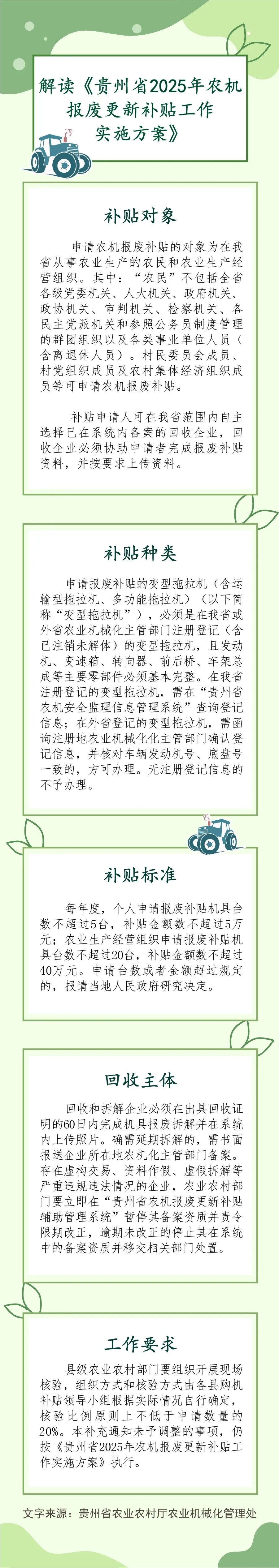 贵州省2025年农机报废更新补贴标准:个人最高5万元,组织最高40万元