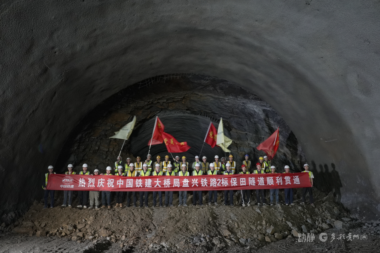 中铁十一局盘兴高铁站前1标总工程师朱斌说:“妥乐隧道长13公里,是全线最长的隧道,有10公里在岩溶发育段落,隧道里面的岩溶裂隙就像蜘蛛网,施工过程中大大小小岩溶127处,最大的岩溶沿线路方向有70多米。我们设置了泄水洞、集水廊道,在隧道里面‘架桥’加桩板,达到最后贯通。”