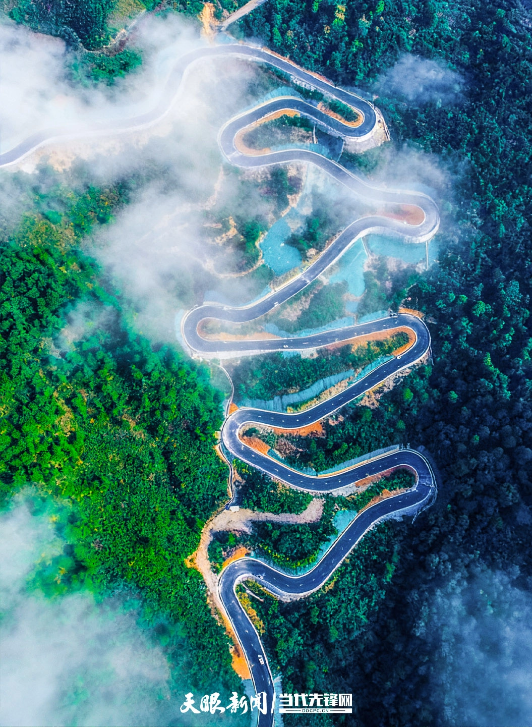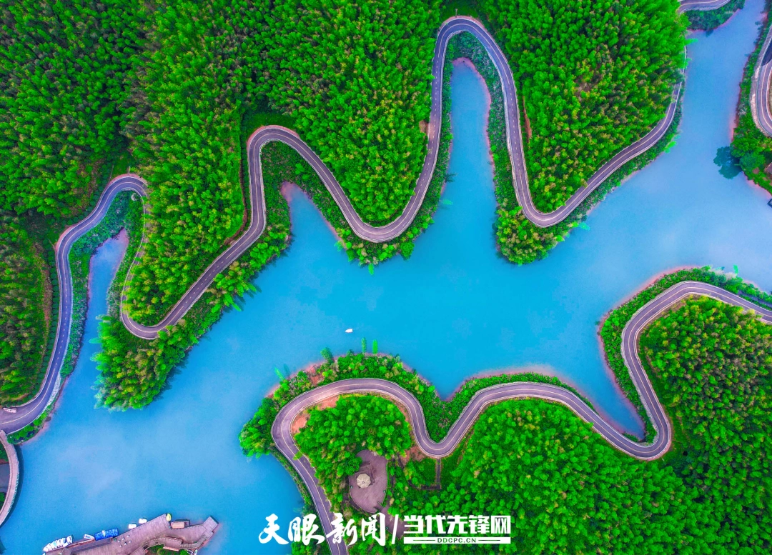 图为2021年5月19日无人机拍摄的赤水竹海国家森林公园穿行在竹林中的旅游公路。