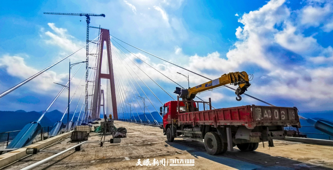 图为2025年7月16日,正在进行桥面沥青铺装的花江峡谷大桥。花江峡谷大桥是贵州六安高速公路的控制性工程,该大桥不仅主桥跨径居山区桥梁跨径世界第一,桥梁高度更是刷新世界纪录,成为“世界第一高桥”。于今年9月28日建成通车。