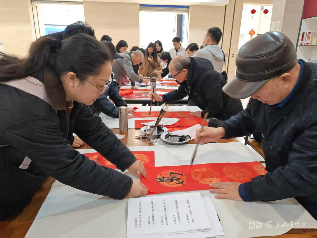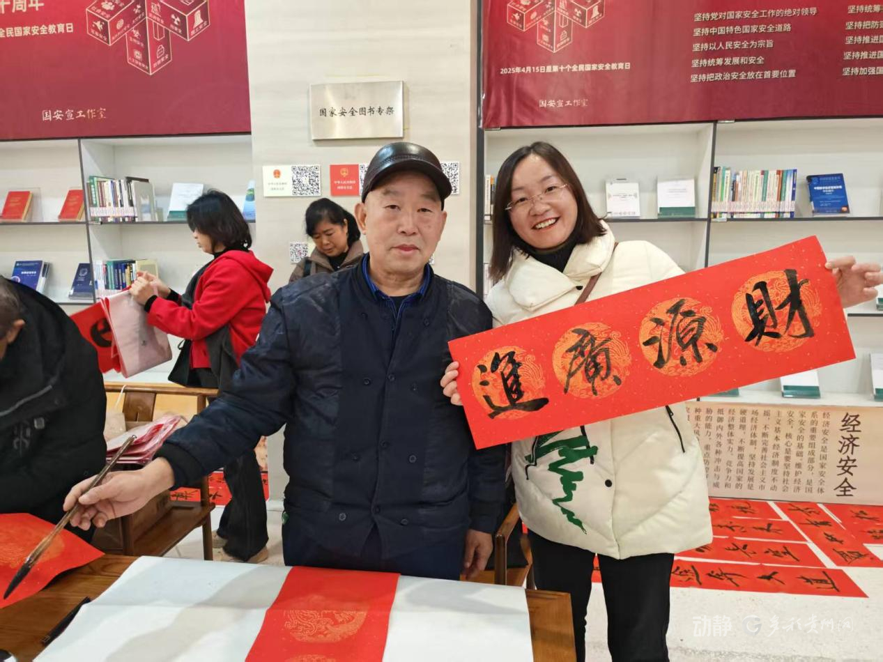 活动现场墨香与花香交织,组成一幅最动人的新年图景!贵州省诗词楹联学会的老师们挥毫泼墨,200 副饱含美好期许的对联免费赠予读者;不少市民亲自提笔,在红纸上书写新春祝福,或临摹宋词名句字帖,把满满的宋韵墨香带回家。