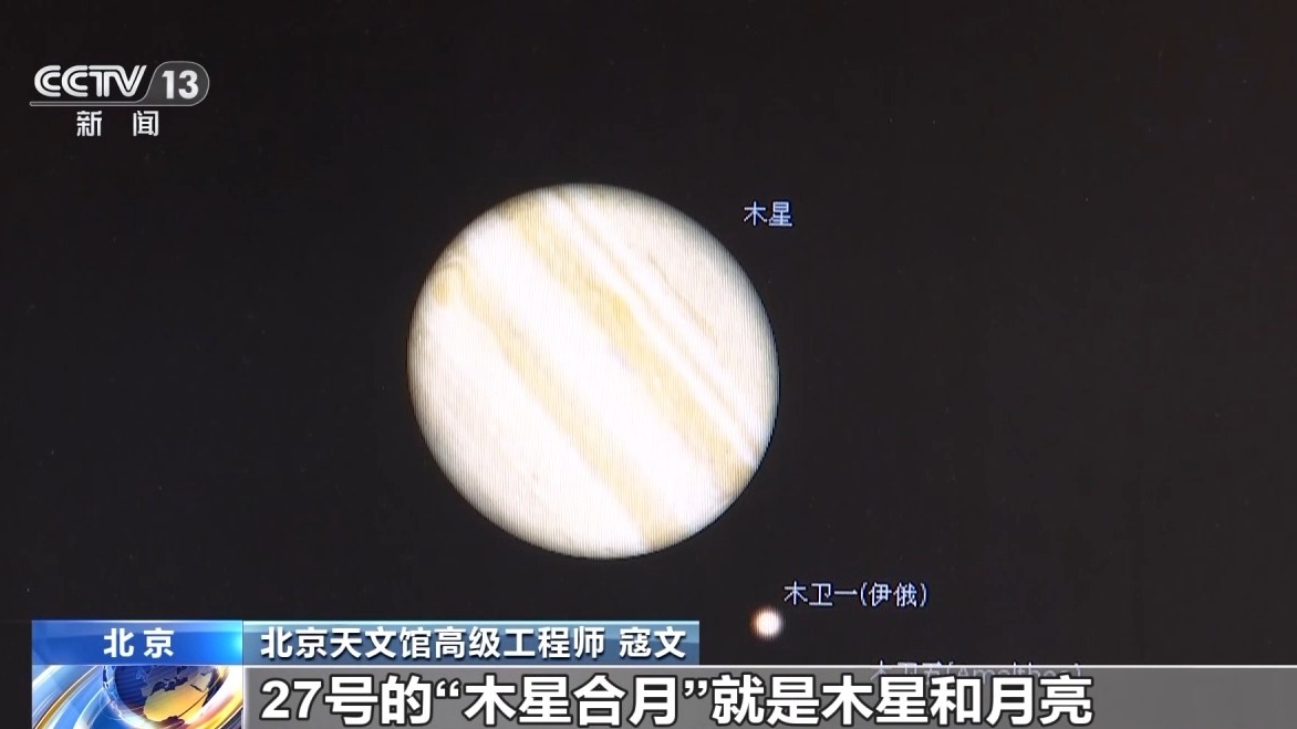 北京天文馆高级工程师 寇文:27日的“木星合月”就是木星和月亮都会出现在双子座附近,木星还是非常非常明亮的,这是应该最容易看到的一个天象。