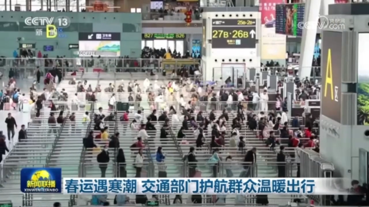 今天(2月5日),央视《新闻联播》播出新闻《春运遇寒潮 交通部门护航群众温暖出行》,报道说,今天上午,粤港澳大湾区首趟开往贵州的务工人员爱心返乡专列从广州南站开出,助力500多名贵州籍在粤务工人员返乡过年。