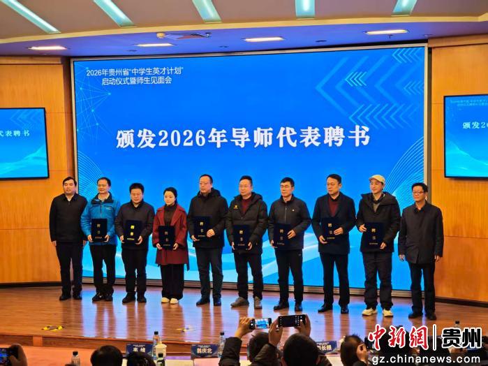 9日,2026年贵州省“中学生英才计划”启动仪式暨师生见面会在贵州省科技馆举行。活动现场为2026年“中学生英才计划”导师代表颁发聘书,并为2025年“中学生英才计划”优秀学生颁发荣誉证书。