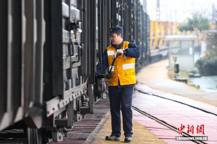 2月9日,调车组工作人员与司机联系试拉作业。中新社记者 瞿宏伦 摄