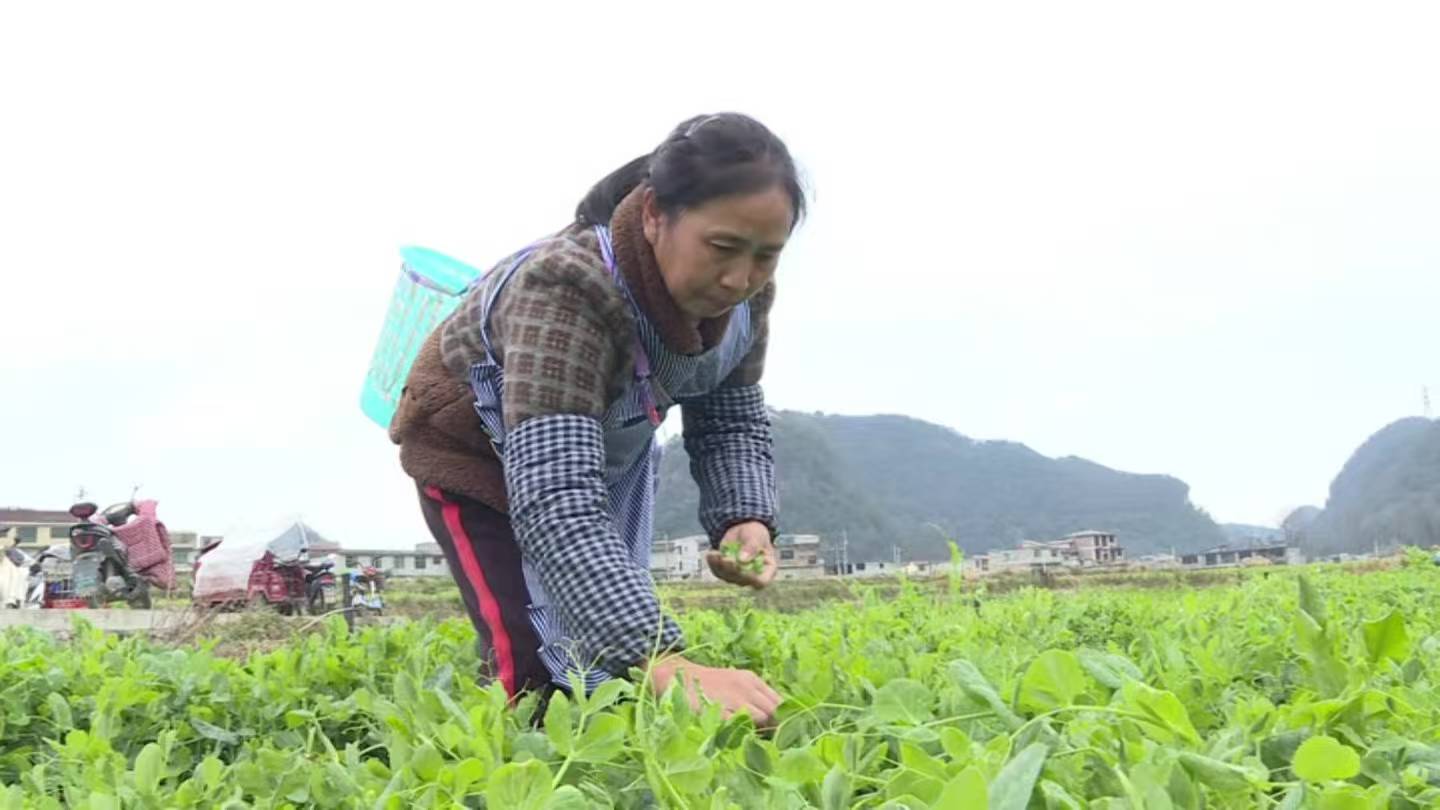这座豌豆尖种植基地常年吸纳周边村民务工,成为家门口的“增收驿站”,将产业红利直接转化为群众收入。用工高峰期时,每天有80余名村民在此忙碌,岗位适配不同年龄段村民,无论是手脚麻利的年轻人,还是做事细致的中老年群体,都能找到合适的活计。