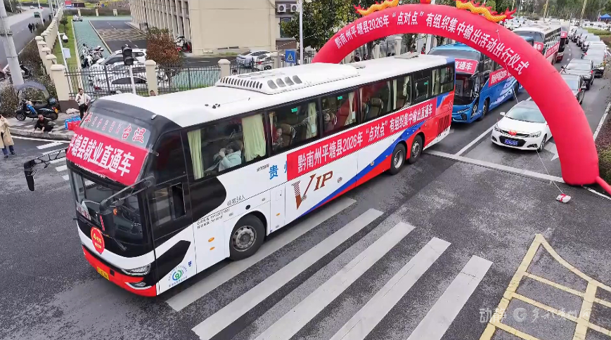 2月24日,黔南布依族苗族自治州平塘县、铜仁市松桃苗族自治县同步开展2026年“点对点”劳务输出活动,集中护送外出务工人员安全返岗,助力群众稳就业、促增收。