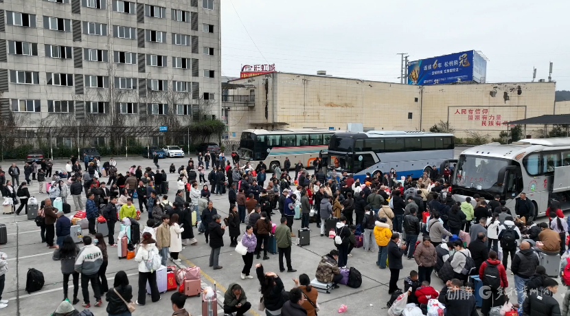 当地自正月初二启动线上报名,精准匹配人员与运力,工作人员现场引导核验、协助出行,务工人员满怀期盼有序登车。