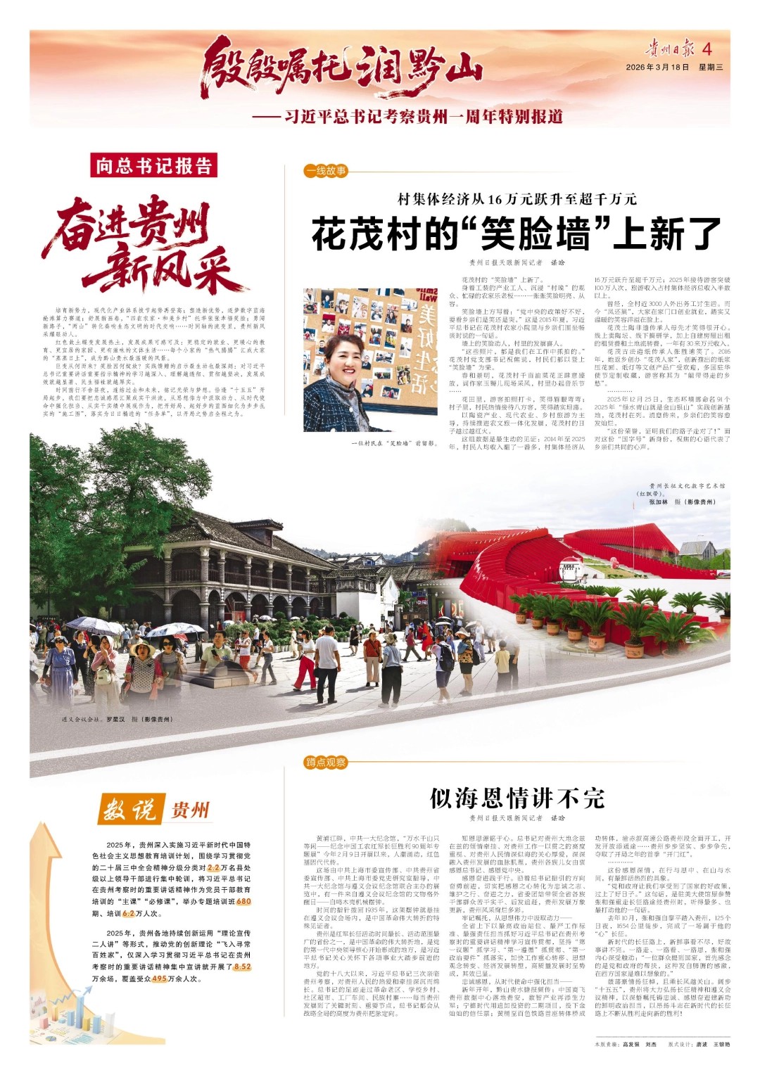 走在新路上,贵州日日新;展示新风采,贵州天天变。17.6万平方公里的热土之上,贵州新风采如春风化雨般迎风生长,处处涌动着改革创新的澎湃活力,升腾起中国式现代化的万千气象。