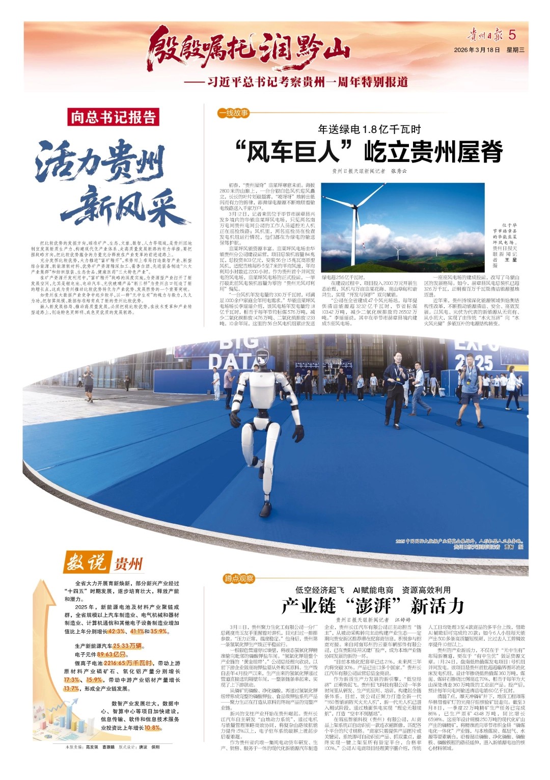 迎战都柳江特大洪峰,我们众志成城;攻坚“四新”“四化”,我们闯关夺隘。“富矿精开”落子有声,重大项目擎起脊梁,产业集群拔节生长,算力规模冲入全国前列。今天的贵州,跑出了加速度,拼出了新风采。