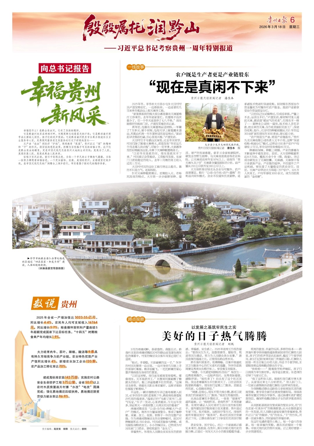 这是幸福贵州!把万家忧乐放在心头,让美好生活触手可及,在阡陌乡间与城市街巷,兑现人民至上的庄严承诺。