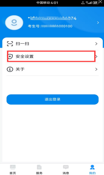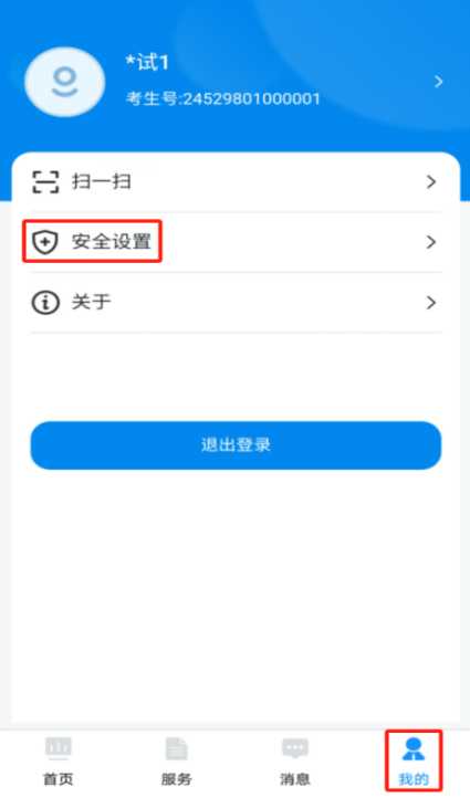 若考生遗忘系统登录密码,可选择【刷脸登录】或【短信验证码登录】方式登录后,通过手机右下角【我的】→【安全设置】→【密码修改】功能,修改登录密码。