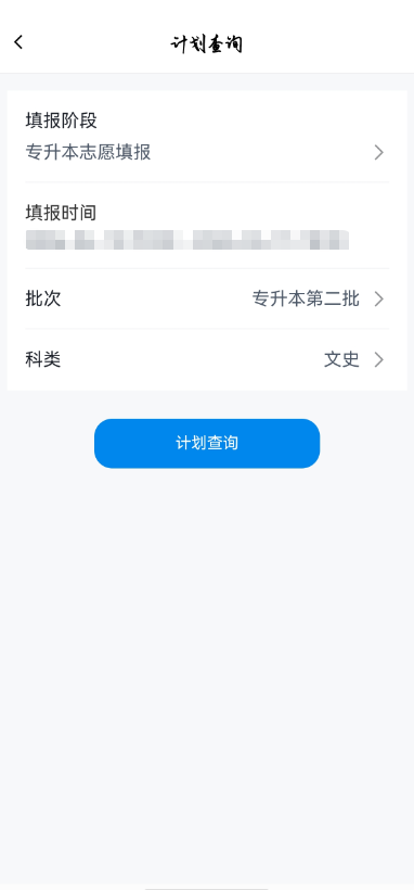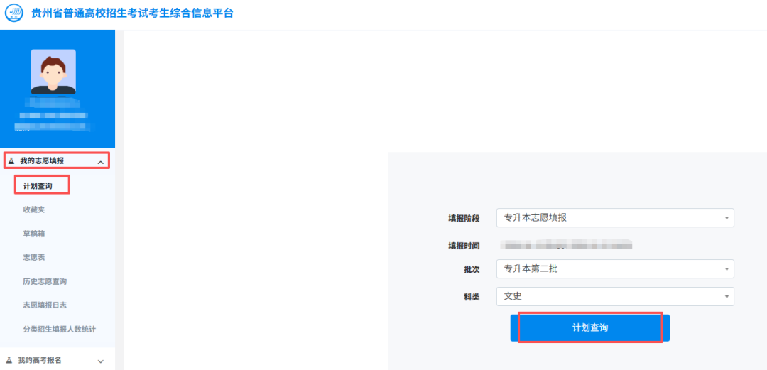 登录系统后,通过系统左侧的【我的志愿填报】→【计划查询】,查询可填报的院校专业计划。