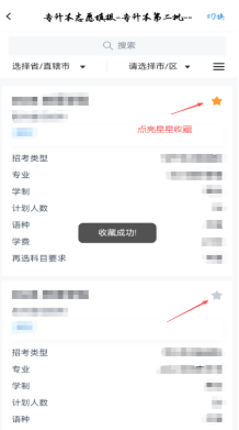 考生如想收藏某院校专业,可通过点击院校名称后★进行收藏。