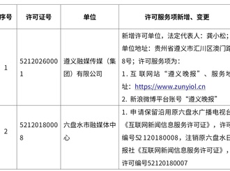 2026年1月贵州省互联网新闻信息服务单位新增、变更新闻信息服务许可事项2026年02月05日 -
