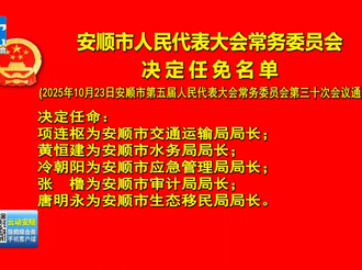 安顺市人民代表大会常务委员会决定任免名单2025年10月24日 -