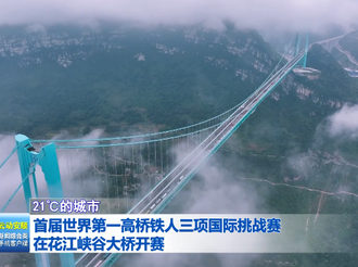 【21℃的城市】首届世界第一高桥铁人三项国际挑战赛在花江峡谷大桥开赛2025年09月22日