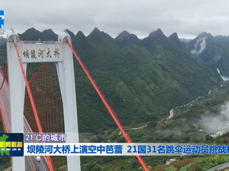 【21℃的城市】坝陵河大桥上演空中芭蕾 21国31名跳伞运动员挑战极限2025年09月26日